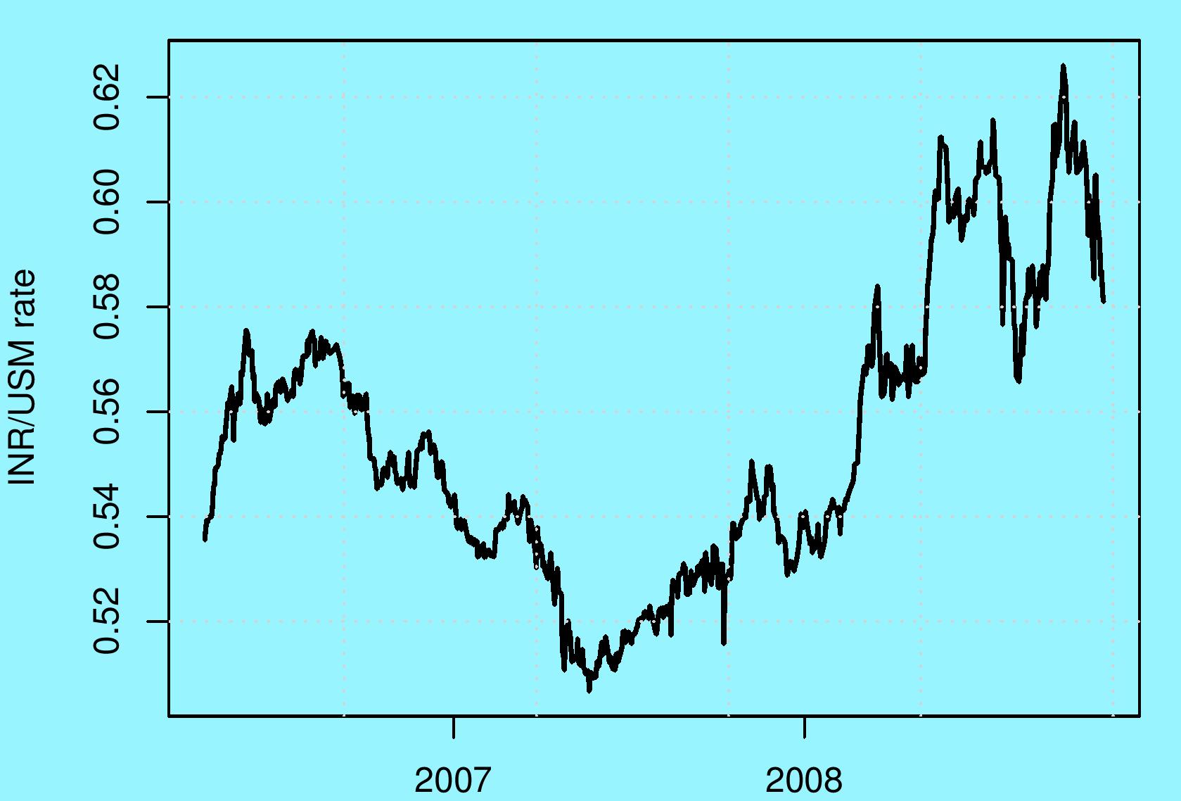 Figure 1 shows the familiar history of the rupee-dollar rate. It runs from April 2006 till the end of October 2008. This shows a depreciation of the rupee from roughly 40 to the dollar in early 2008, first to 42 and then a much sharper movement to 50 rupees a dollar. What was going on?